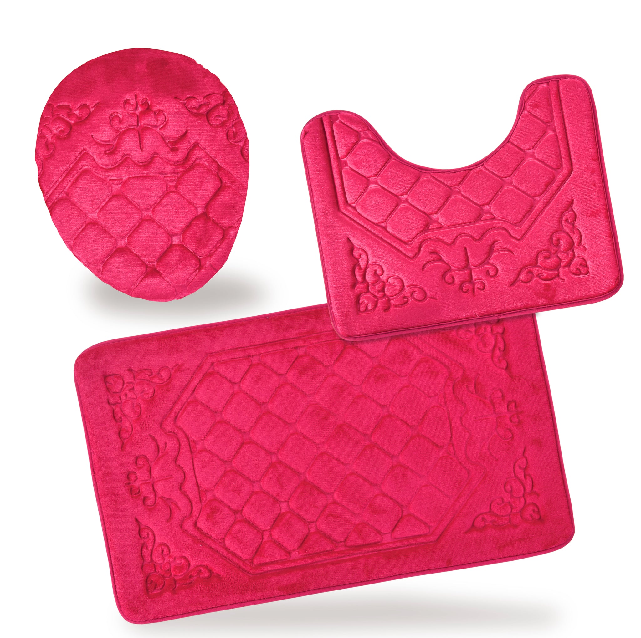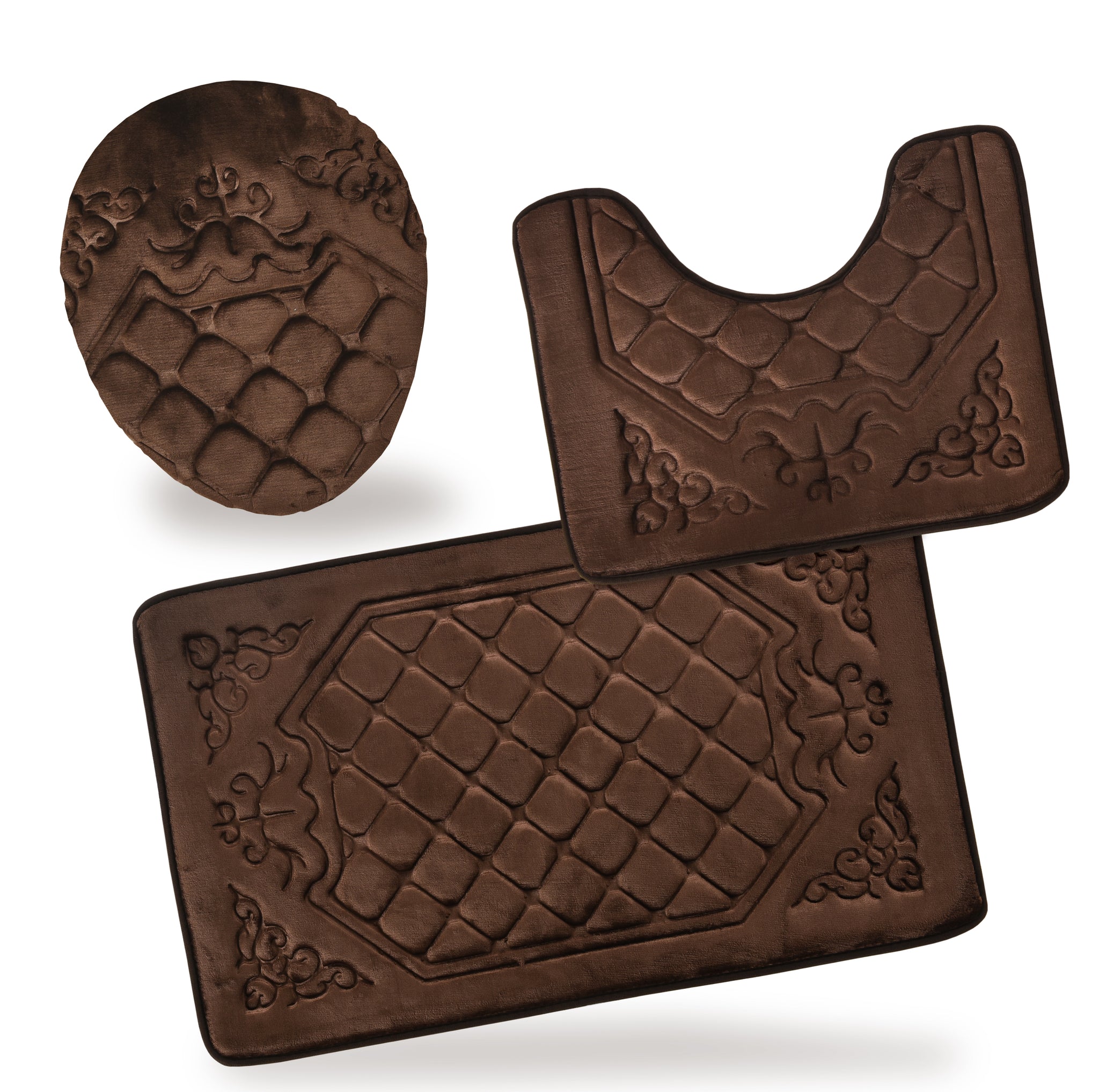 - 3 Piece Memory Foam Bathroom Rug Set For your Comfort.