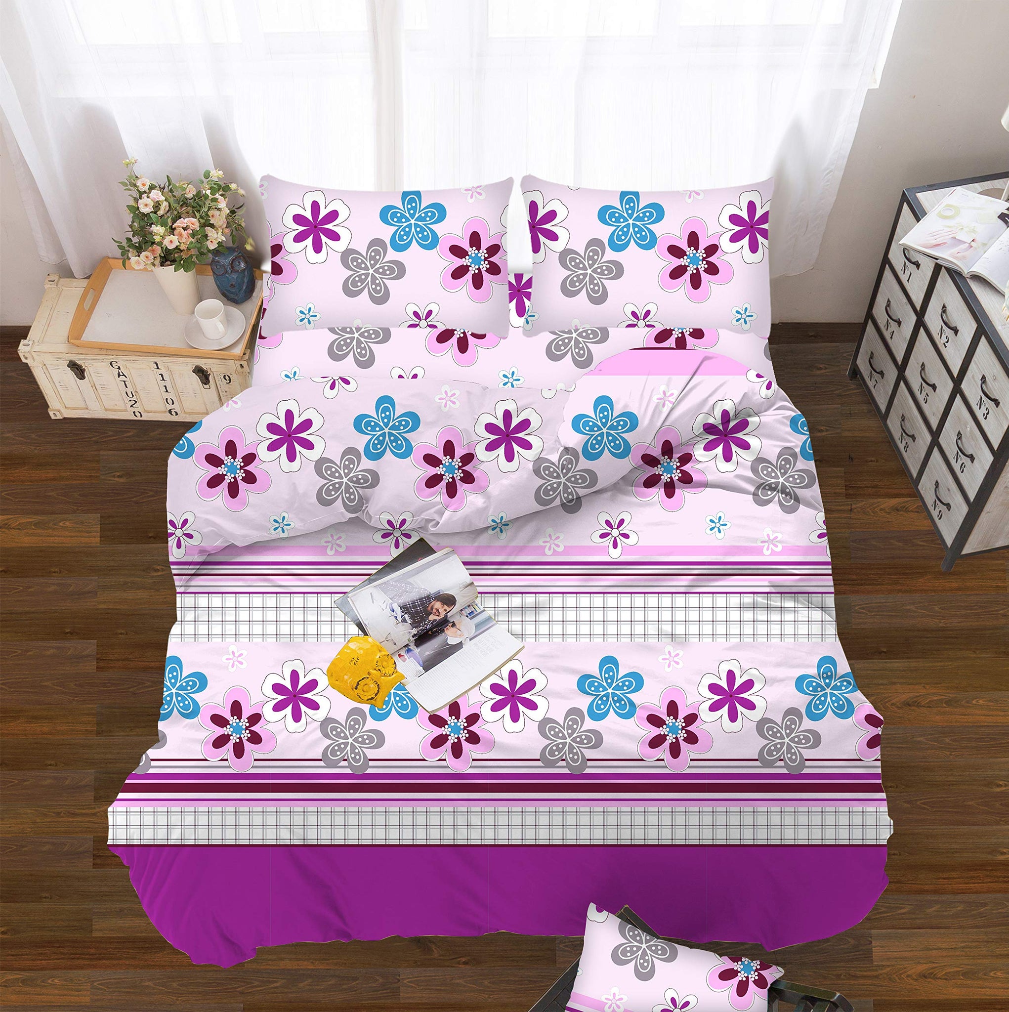 All American Collection Purple-Pink Flowers Printed Bedding Sets