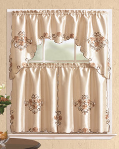 Hang them up on your kitchen windows and the room will instantly transform into a bright and cheerful space that you will love to spend time in. Our embroidered 3-piece sets that consist of two tiers and a valance is the perfect choice for you as they will fit into any interior decor or design. They come with intricate ruffled and scalloped details that can add some extra style and flair to your kitchen. Give your kitchen an elegant makeover with our collection of kitchen curtains online. Shop now!